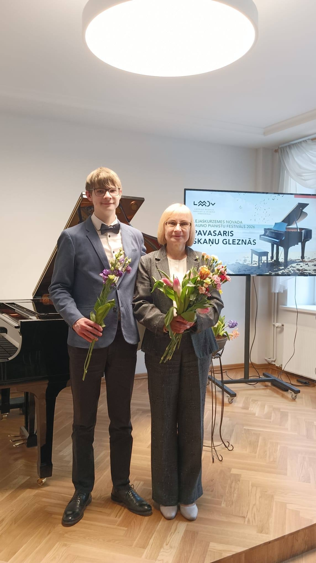 Lejaskurzemes novada jauno pianistu festivālā “Pavasaris skaņu gleznās 2026” 2026.gada 17.aprīlī Liepājas Karostas mūzikas skolas audzēkņi Darja Timofejeva un Samuels Mikalausks godam aizstāvēja savas skolas vārdu, apliecinot gan savu muzikālo izaugsmi sasniedzot 8.klasi, gan skatuves kultūru.